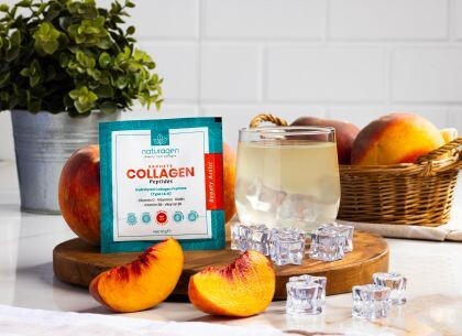 Състав: Хидролизиран колегаен (телешки), Ябълчена киселина (регулатор на киселинността), Малтодекстрин (пълнител), Аромат праскова (3,8%) (аромат), L-аскорбинова киселина, Силициев диоксид (антислепващ агент), Стевиол гликозид (подсладител), DL-алфа-токоферил ацетат, D-Биотин, Пиридоксин хидрохлорид, Тиамин хидрохлорид.