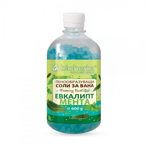 Пенообразуващи морски соли за дълбока релаксация и свежест с етерични масла от евкалипт и мента.
